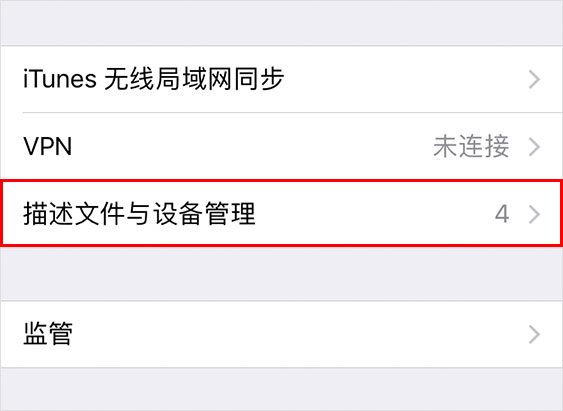 点击--通用--选项进入到通用设置页面,在通用设置页面里面下翻找到--设备管理(描述文件)--选项,然后点击进入,如下图所示。