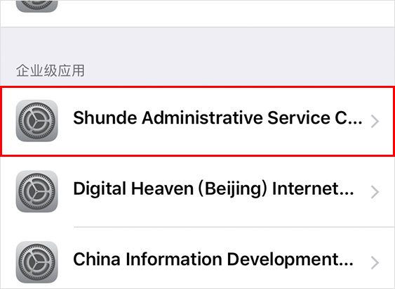 进入到了--设备管理--页面以后,然后在-企业级应用-下面点击打开“Shunde Administrative Service Center”。