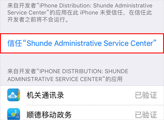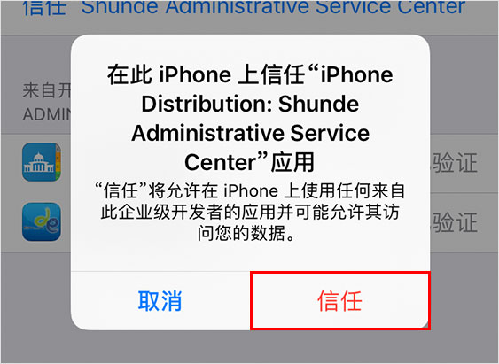 点击“信任Shunde Administrative Service Center”